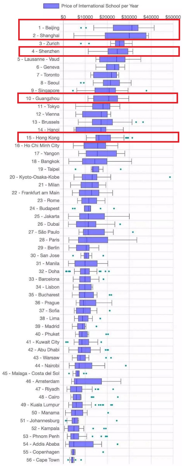 雖然一直知道國內一線城市的國際學校學費貴,但沒想到,已經貴到排在世界前列了。