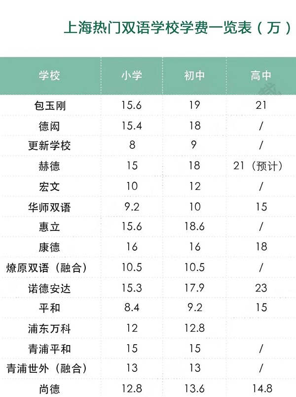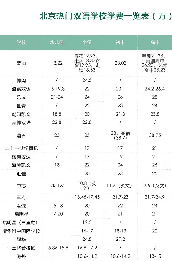 學費僅次于純外籍國際學校的,要屬雙語國際學校,雙語國際學校近幾年在國際教育領土里開疆辟土,數量不斷攀升,學費也是一騎絕塵,有些甚至比純外籍還要貴。