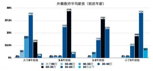 以前我們有扒過,國際學校外籍老師的薪資平均都在年薪30萬以上,5年經驗的就要50萬往上了。
