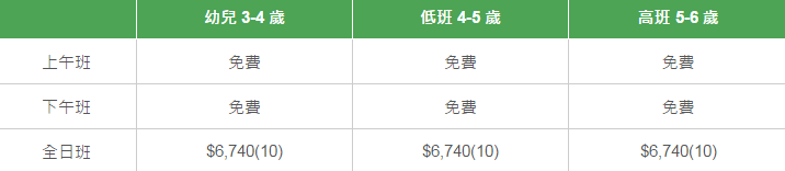 學校有參加「幼稚園教育計劃」,以下列出扣減政府資助后不同班別的全年學費和期數